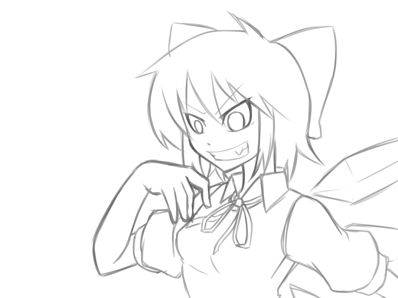 今回、チルノは物語の関係上少し不機嫌なのですが、不機嫌通り越してやたら悪そうな顔してますね。この絵。